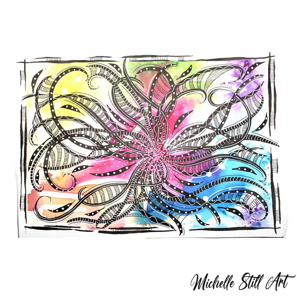 More curves and line on exploding watercolour powder. I feel like there is an octopus starting to reach out of this one.