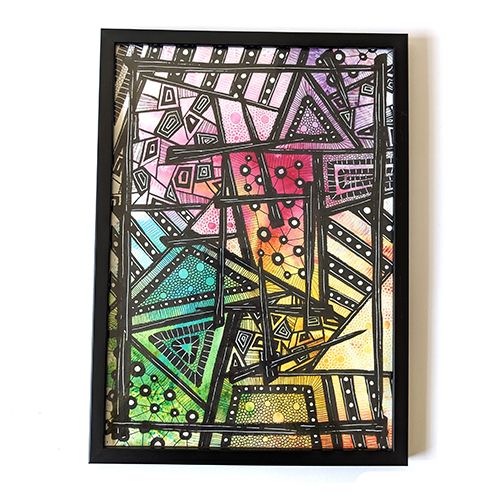 Ink and watercolour powder on watercolour paper A4