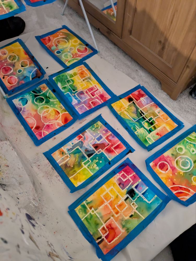 Having some fun with ‘exploding’ powder watercolour paints and masking fluid. Obsessed with the vibrancy of these Brusho paints.